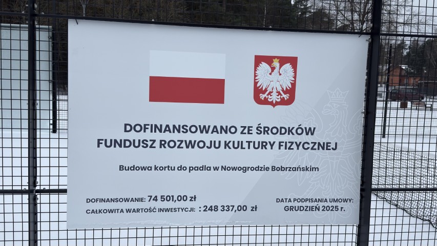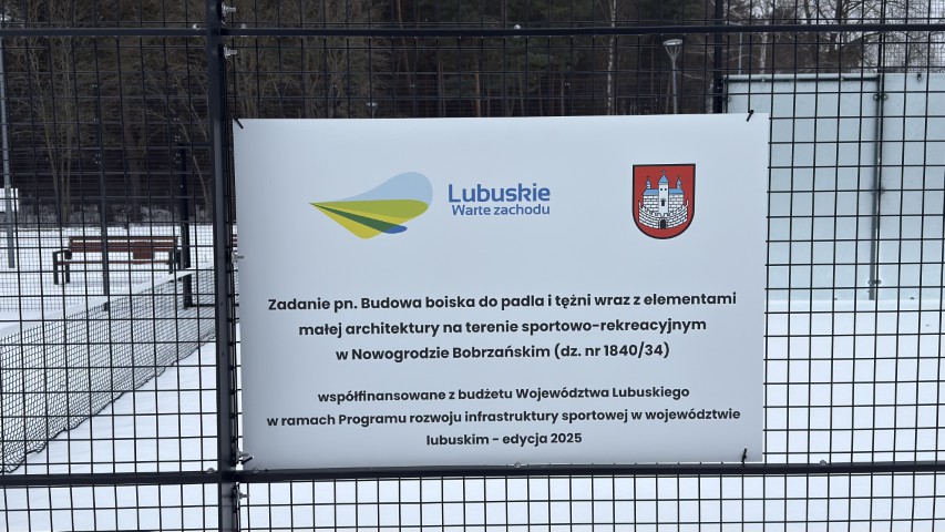 Zadanie zrealizowane w ramach inwestycji „Budowa boiska do padla i tężni wraz z elementami małej architektury na terenie sportowo-rekreacyjnym w Nowogrodzie Bobrzańskim (dz. nr 1840/34)”.