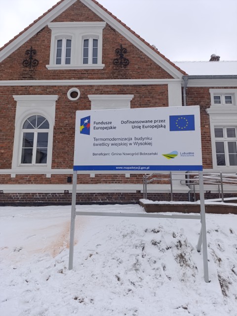 Dnia 18 grudnia 2025 r. Gmina Nowogród Bobrzański zakończyła realizację projektu pn. „Termomodernizacja budynku świetlicy wiejskiej w Wysokiej” współfinansowanego ze środków Europejskiego Funduszu Rozwoju Regionalnego, w ramach Programu Fundusze Europejskie dla Lubuskiego 2021-2027, Priorytet 2 „Fundusze Europejskie na zielony rozwój Lubuskiego”, Działanie 2.1 „Efektywność energetyczna – dotacje”.
